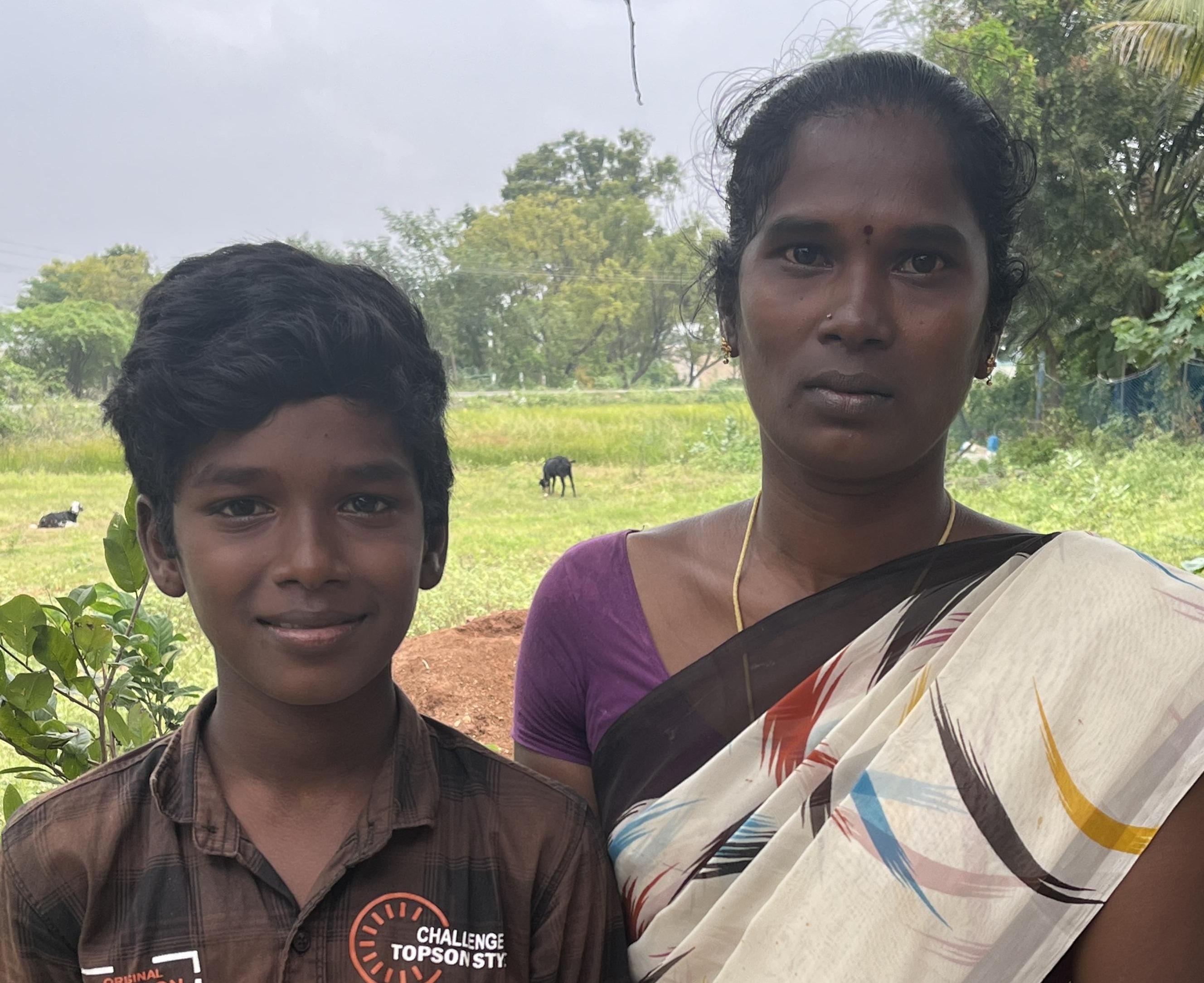 Moeder: P. Kathikaiselvi is poetsvrouw op het gemeentenhuis van Iraniyam. Ze hebben het alles behalve breed. Met de sponsoring kan Gunaseelan in ieder geval naar school.